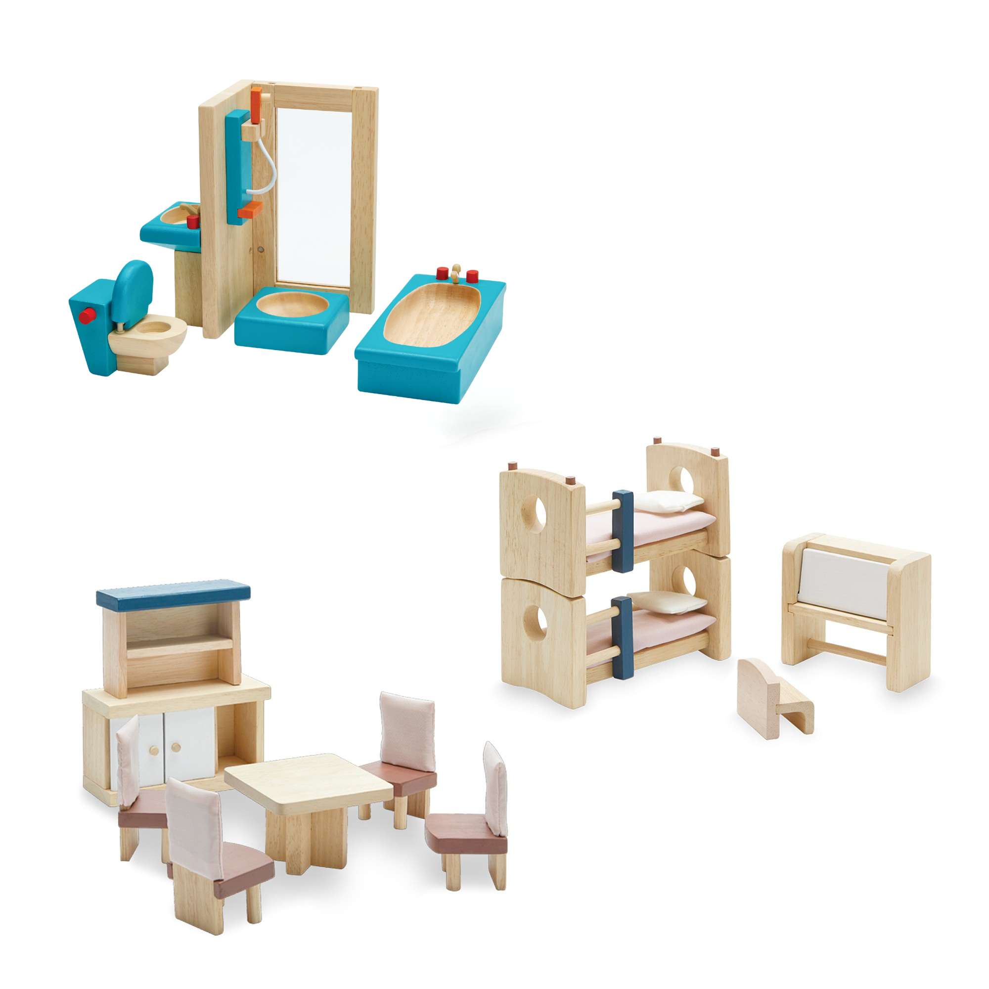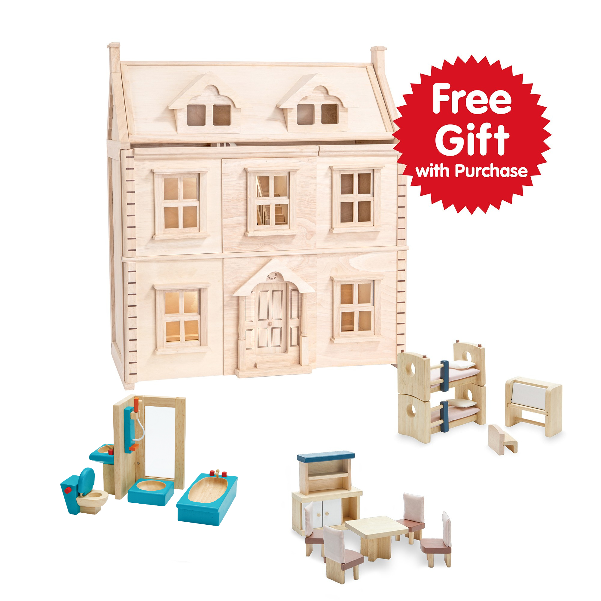 This heirloom-quality dollhouse inspires imaginative play for generations, crafted from sustainable rubberwood and non-toxic finishes. The included furniture bundle makes it easy to start building a world of pretend play right away.