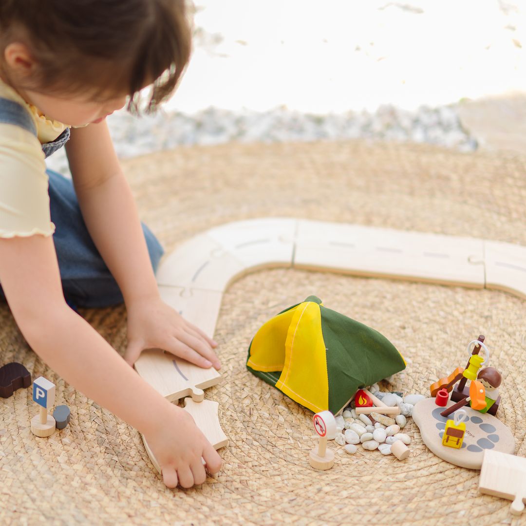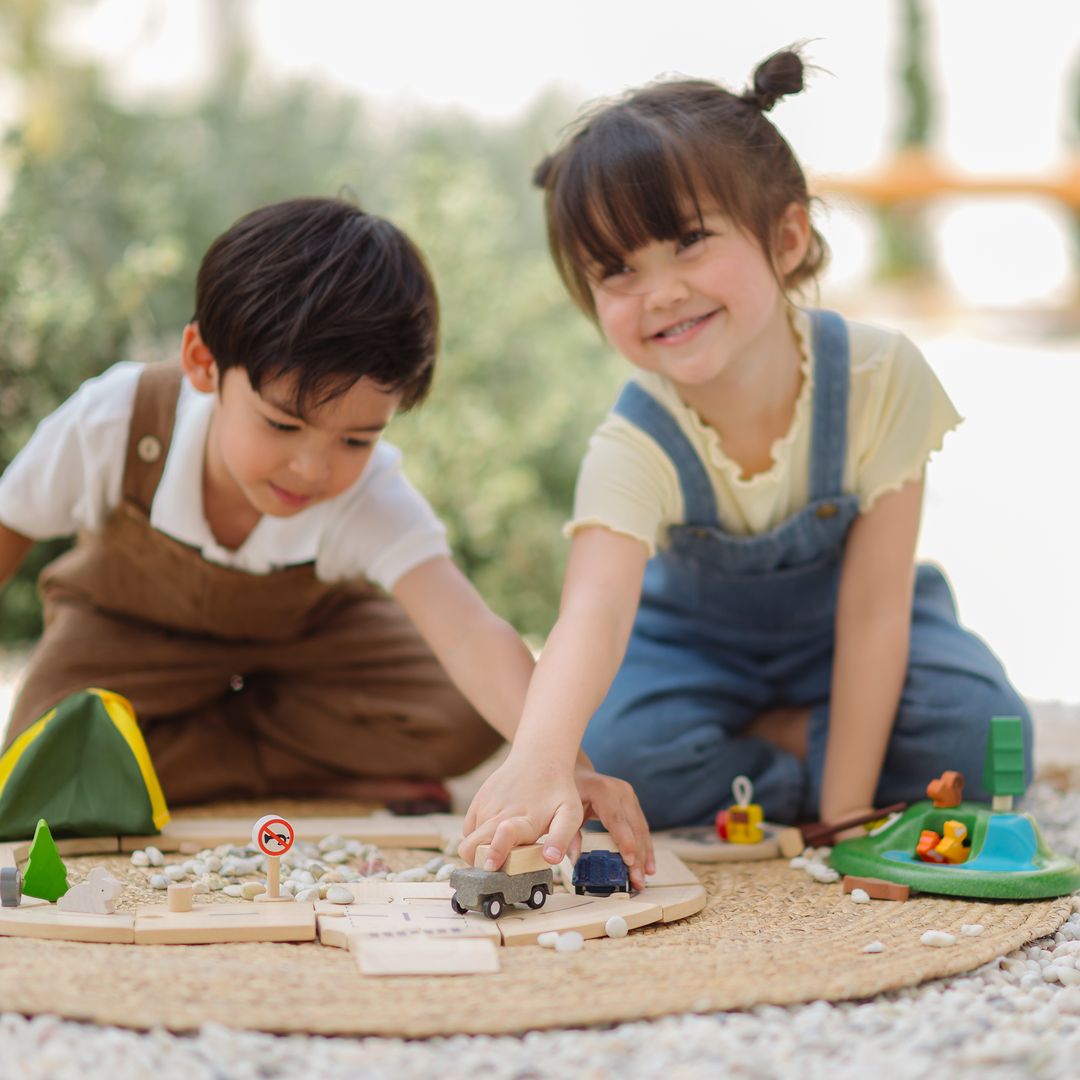 "Adventure awaits in the heart of the jungle! The PlanToys Jungle Explorer's Roadway Playset invites children to create wild routes and thrilling stories as they build paths, camps, and animal habitats. Every journey encourages creativity, problem-solving, empathy, and storytelling while inspiring a love for nature and exploration. The set includes 47 pieces in total, featuring wooden road tracks, vehicles, explorer accessories, camping gear, and forest animals."
